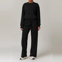 - Fit: Relaxed wide-leg pants with a high waist + fitted long sleeve crop sweatshirt