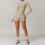 2 Piece Yoga Set – Long Sleeve Zip Crop Top & High Waist Shorts Seamless Activewear