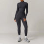 2 Piece Yoga Set – Long Sleeve Zip Crop Top & High Waist Leggings Seamless Activewear