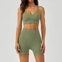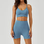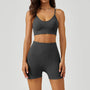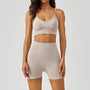 Acid Wash Ribbed Yoga Set – 2 Piece Sports Bra & High Waist Shorts Gym Activewear
