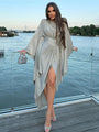 Grace meets glamour. The Elegant Batwing Sleeve Satin Maxi Dress brings timeless sophistication to your wardrobe with a modern twist. Designed with soft, flowing satin and a relaxed batwing silhouette, it drapes beautifully to flatter every figure. The cinched high waist and fluid skirt create an effortlessly chic shape perfect for evening events, beach parties, or elegant vacations.