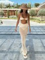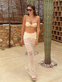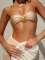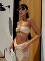 Beige 3 Piece Bikini Set – Strapless Bandeau Top with Sheer Maxi Skirt