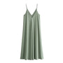 - Features: Adjustable spaghetti straps, flattering backless design, and long draped skirt