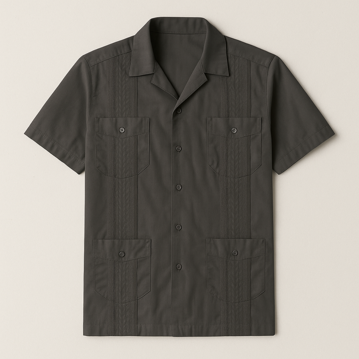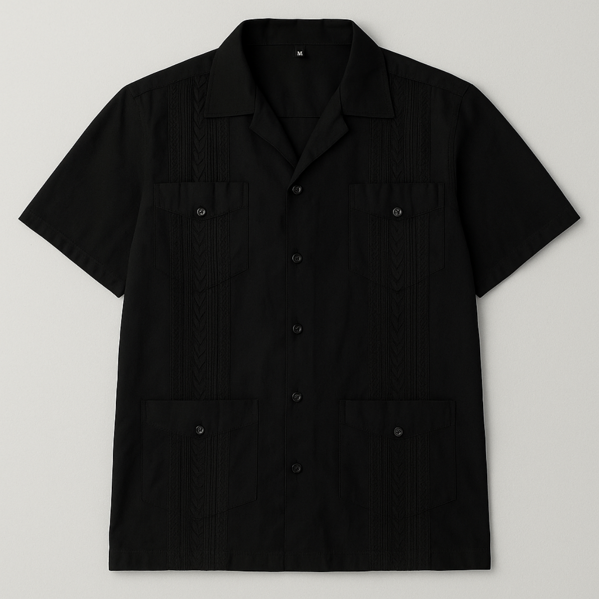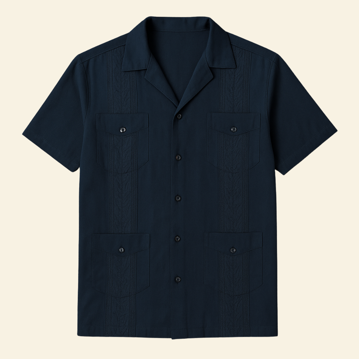 - Features: Classic Guayabera styling, front embroidery, four pockets, camp collar