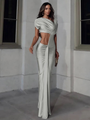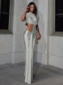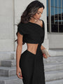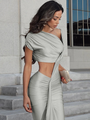 - Features: One-shoulder design, cut-out waist detail, and front slit