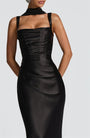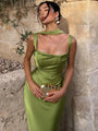 Radiant Elegance, Effortless Glamour – The Elegant Lace Up Satin Backless Maxi Dress