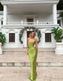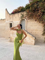 Elegant Lace Up Satin Backless Maxi Dress – Evening Gown