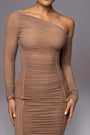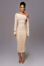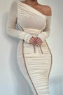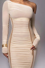 Elegant One Shoulder Long Sleeve Midi Dress – Bodycon Ruched Party Outfit