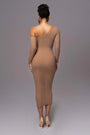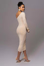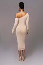 Sophisticated Elegance, Effortless Allure – The Elegant One Shoulder Long Sleeve Midi Dress
