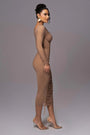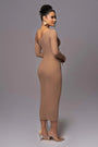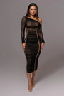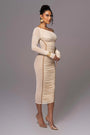 This figure-enhancing midi dress exudes understated luxury, making it your go-to outfit for any elegant occasion. Pair it with statement heels and gold accessories to complete your captivating look.