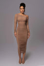 Step into confidence and sophistication with the Elegant One Shoulder Long Sleeve Midi Dress, a stunning fusion of modern glamour and timeless grace. Its asymmetrical neckline, ruched bodycon silhouette, and sleek mesh patchwork design create the perfect balance of class and sensuality. Designed to hug your curves and move with you, it flatters every angle while keeping you comfortably poised from dinner dates to cocktail parties.
