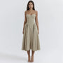 Elegant Spaghetti Strap Pleated A Line Midi Dress