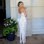 Floral Lace Maxi Dress – Elegant Spaghetti Strap Evening Gown