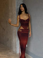 Gradient Two Piece Set – Braided Strap Crop Top & Maxi Skirt