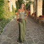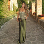 Green Satin Two Piece Set – Lace Corset Top and High Waist Maxi Skirt