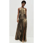 - Features: Pleated fabric, high slit, sleeveless halter design, breathable & elegant