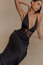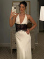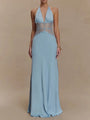 Halter Maxi Dress – Deep V Neck Lace Waist Evening Gown