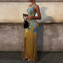 Halter Pleated 2 Piece Set – Elegant Gradient Crop Top & Maxi Skirt Outfit