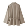 Relaxed Elegance, All-Day Ease – The Khaki Two Piece Set (Loose Belted Blazer & Wide Leg Trousers)