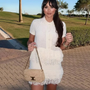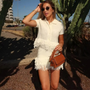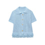 - Features: Tassel trim edges, short sleeves, mini skirt design, and a collared neckline
