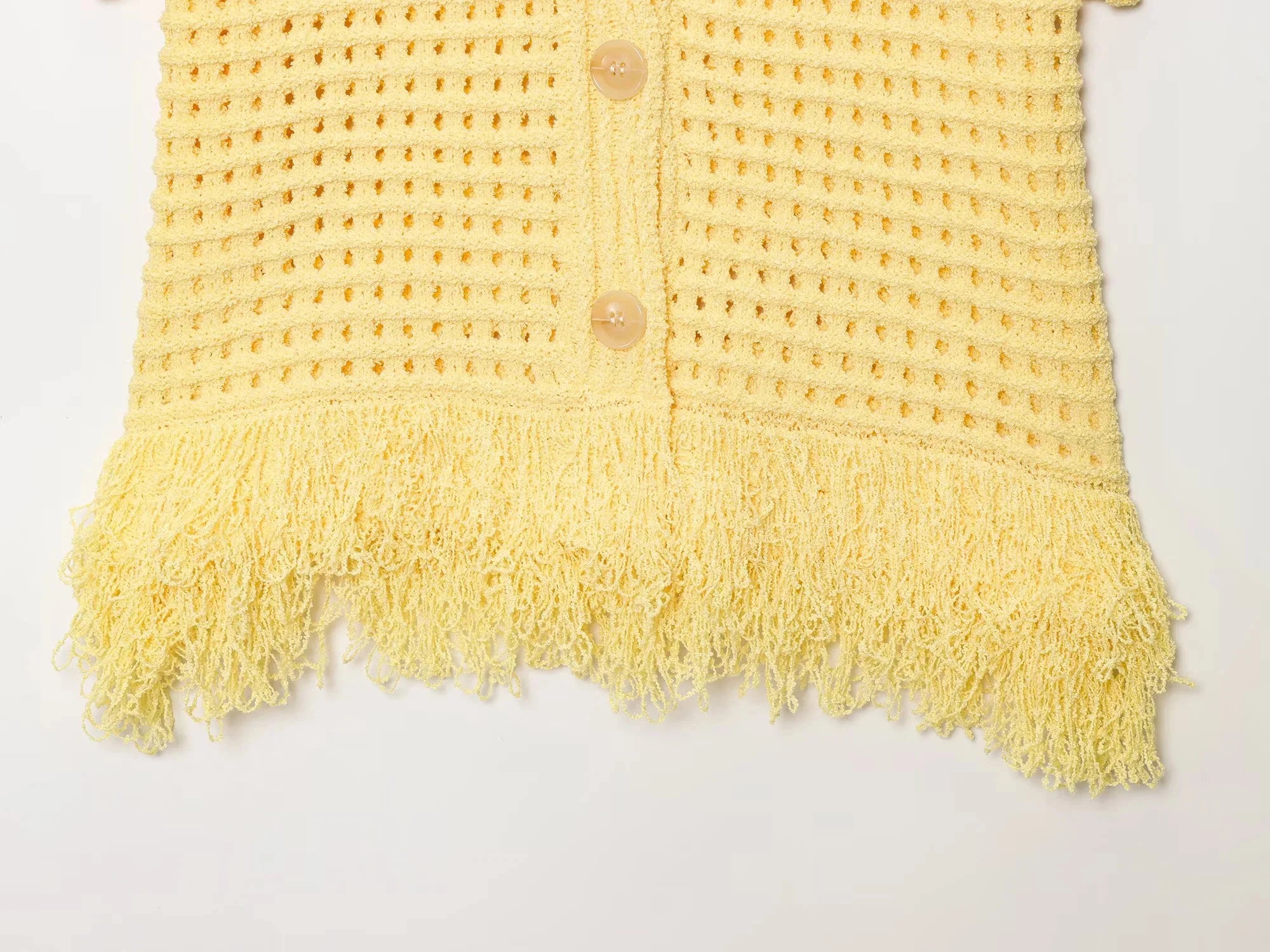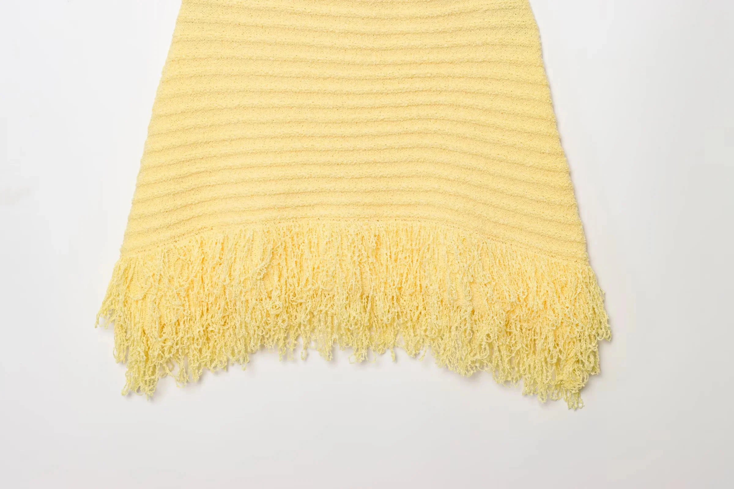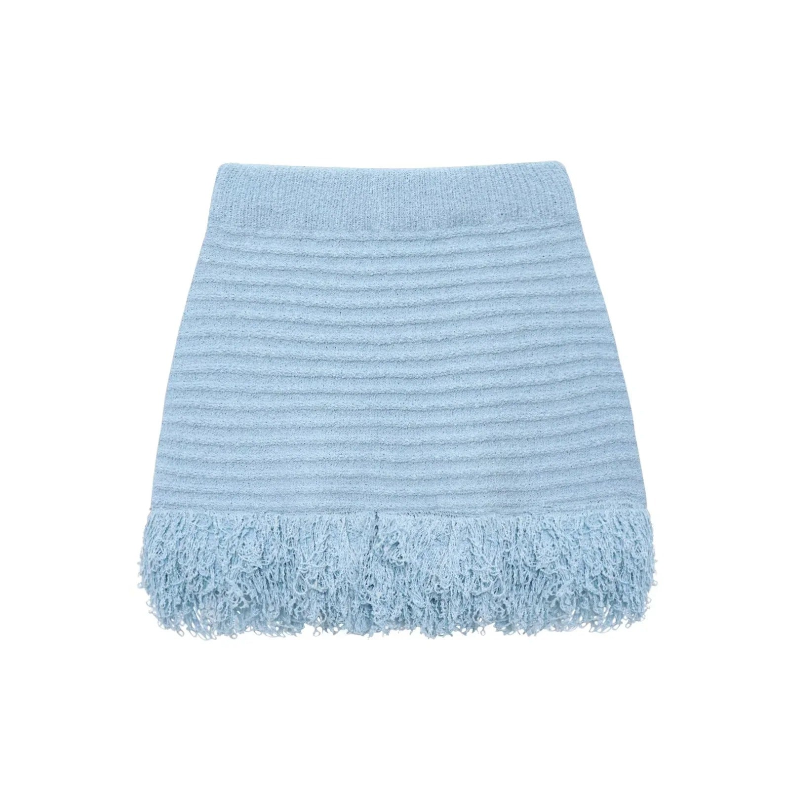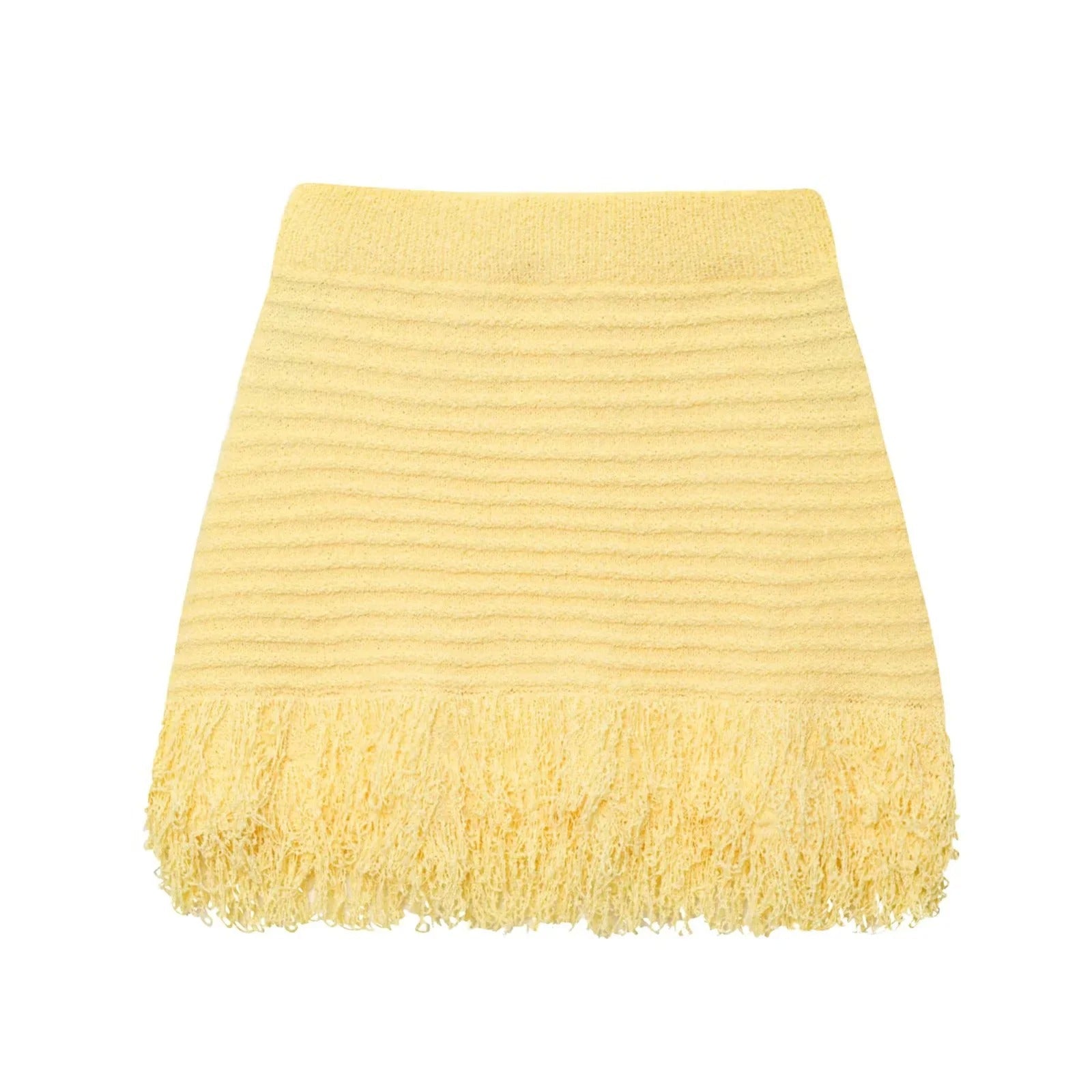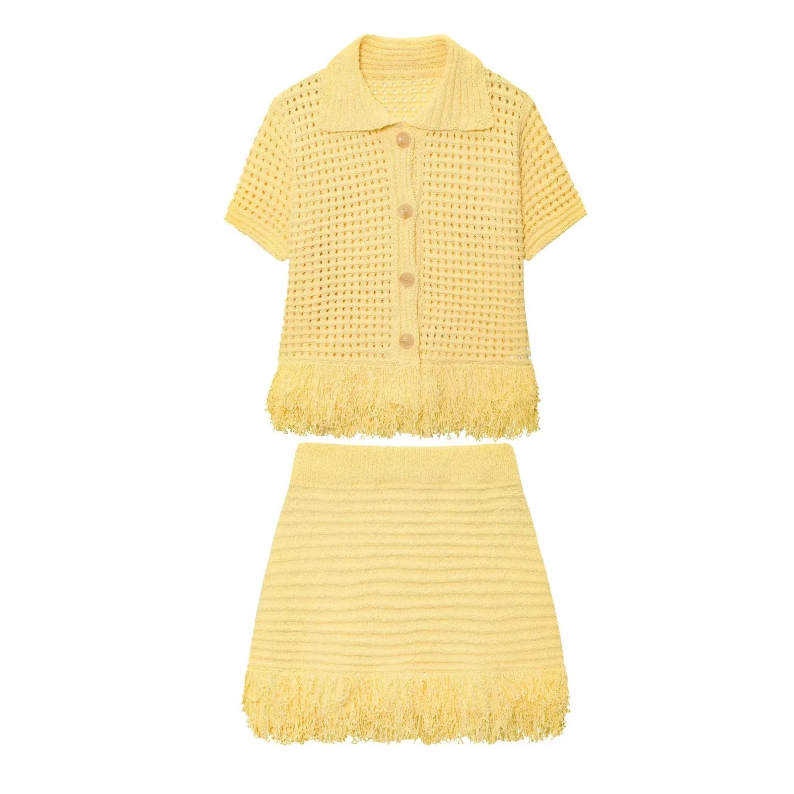 Knitted Two Piece Set – Tassel Short Sleeve Top & Mini Skirt Co ord Outfit