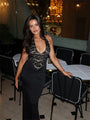 Lace Halter Maxi Dress – Backless Evening Party Gown