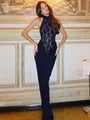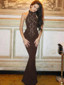 Elegant Allure, Effortless Glamour – Lace Halter Maxi Dress – Elegant Sleeveless Evening Gown