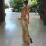 Turn heads with every step. The Leopard Print Halter Maxi Dress Sleeveless High Neck Bodycon Evening Dress combines wild allure with elegant sophistication. Designed to sculpt and flatter your silhouette, this dress hugs your curves while keeping you comfortable and confident. The high neck halter style and backless cut create a striking balance of daring and refined perfect for nights out, parties, or any event where you want all eyes on you.