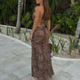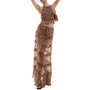 - Features: Halter crop top with tie back and matching leopard print maxi skirt