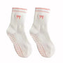 Light Pink Non Slip Grip Socks Women – Pilates, Yoga & Fitness Knitted Embroidered Socks