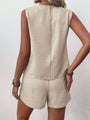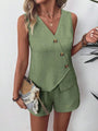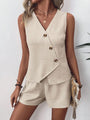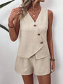 Linen Two Piece Set – Sleeveless V Neck Button Top & High Waist Shorts