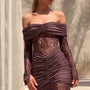 Off Shoulder Lace Maxi Dress – Elegant Ruched Long Sleeve Gown