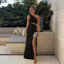 Turn every entrance into a statement with the One Shoulder Cut Out Maxi Dress – where modern design meets timeless elegance. With its asymmetrical one-shoulder silhouette, flattering cut-out waist, and daring high slit, this gown is crafted to accentuate your curves and command attention. Perfect for evening soirées, beach parties, or elegant getaways, it blends sophistication with a touch of bold allure.