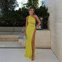 One Shoulder Cut Out Maxi Dress – Elegant High Slit Evening Gown