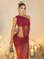 One-Shoulder Maxi Dress – Sheer Ruched Evening Gown