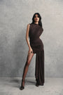 - Features: One-shoulder halter neckline, ruched detailing, and high side split for added allure