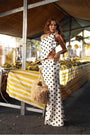 - Features: One-shoulder neckline, sleeveless top, and timeless polka dot print