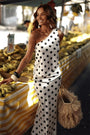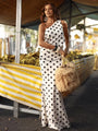 Playful Elegance, Effortless Chic – The Polka Dot One Shoulder Maxi Dress