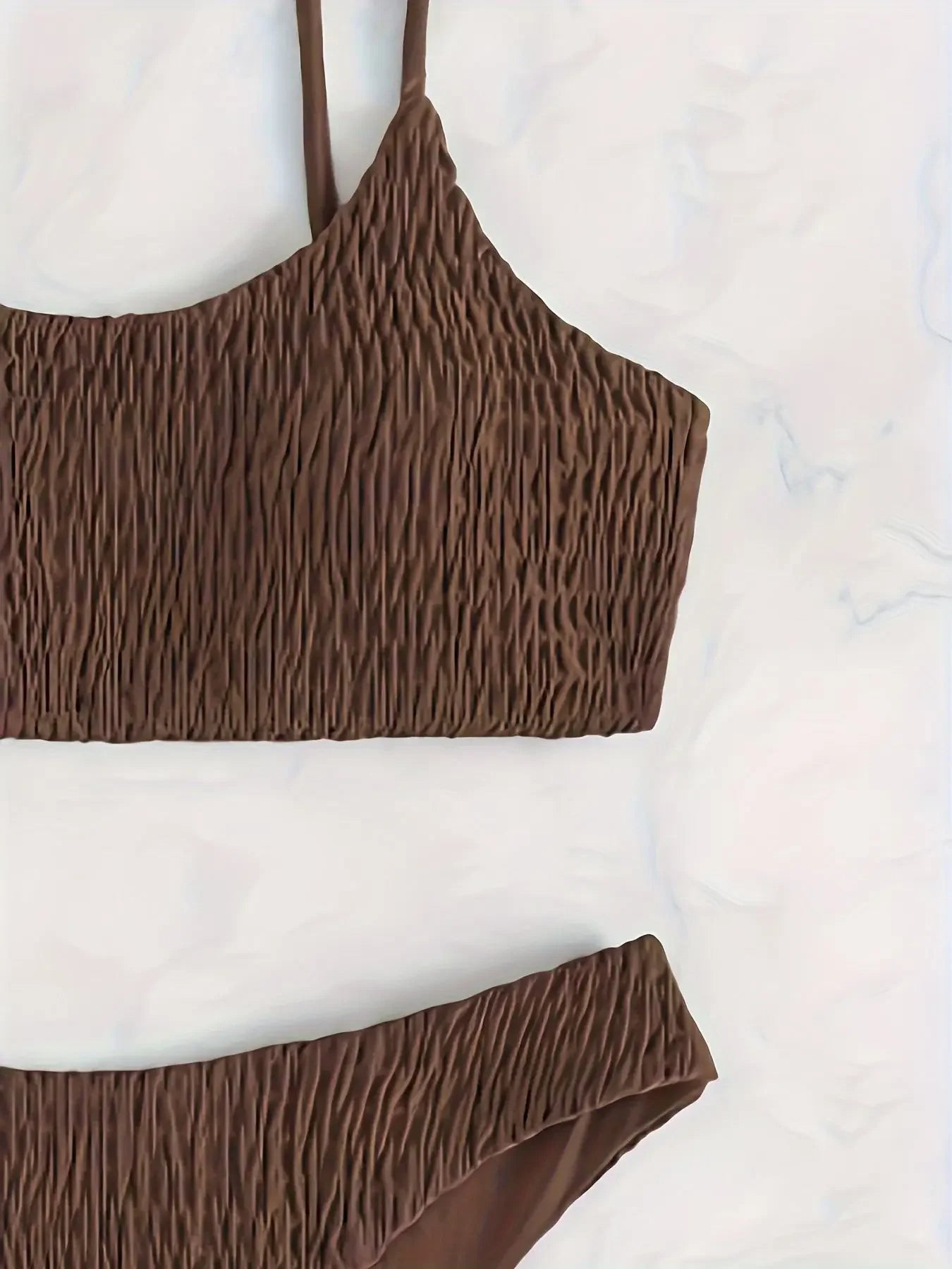 Make a statement with the Saar Wrinkled Thong Bikini Set, designed for a trendy and flattering beach look. Featuring a stylish wrinkled fabric texture, this bikini adds a touch of uniqueness while ensuring a perfect fit. The adjustable triangle top provides customizable support, while the thong-style bottoms enhance your curves for a bold and confident appearance. Crafted from soft, stretchable material, this bikini is comfortable, quick-drying, and ideal for sun-soaked days. Elevate your swimwear collection with the Saar Wrinkled Thong Bikini Set and turn heads wherever you go!