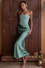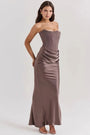 Effortless Drama, Sculpted Elegance – Satin Corset Strapless Maxi Dress