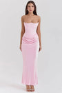 - Fit: Body-hugging corset-style top with ruched maxi skirt