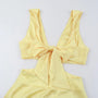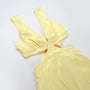 - Features: Deep V neckline, cut-out waist design, high slit, sleeveless silhouette
