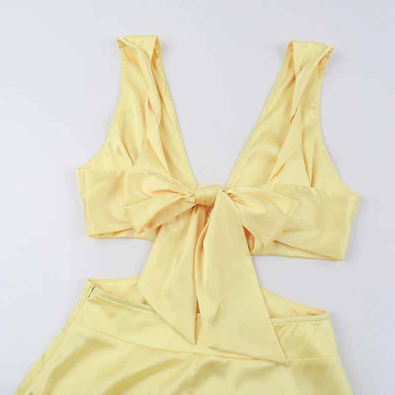 Satin Maxi Dress – Deep V Neck Cut Out Evening Gown