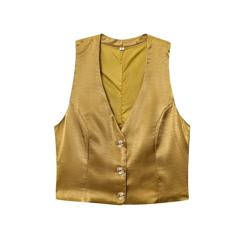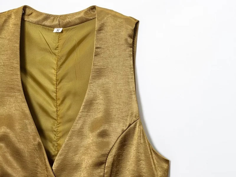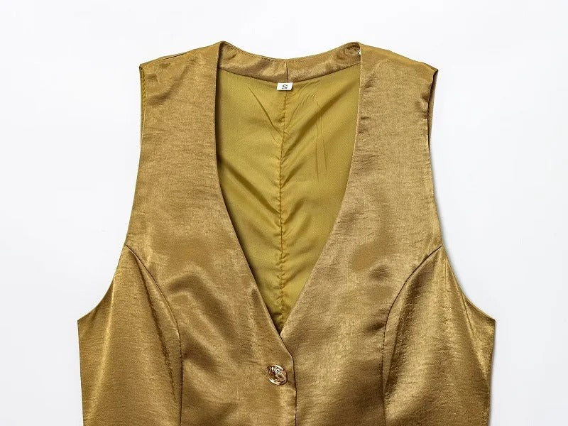 Satin Vest and Wide Leg Pants Set – Elegant Trouser Outfit