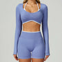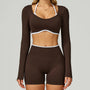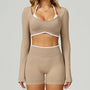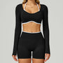 Seamless Yoga Set – Long Sleeve Crop Top & High Waist Shorts Activewear