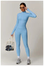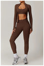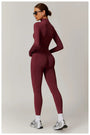 Seamless Yoga Set – Long Sleeve Zip Jacket & High Waist Leggings Gym Outfit