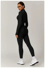 - Fit: Slim-fit long sleeve zip jacket; high-waist leggings for tummy control and a sculpted silhouette