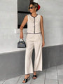 Sleeveless Button Front Jumpsuit – Wide Leg One Piece with Black Trim