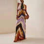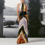 The bold boho print adds a touch of artistry and individuality, making it perfect for evening events, summer nights, or resort getaways. With its chic backless halter design and floor-sweeping length, this gown delivers effortless confidence and charm.