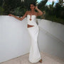 - Features: Strapless neckline, side cut-out detail, and elegant backless design